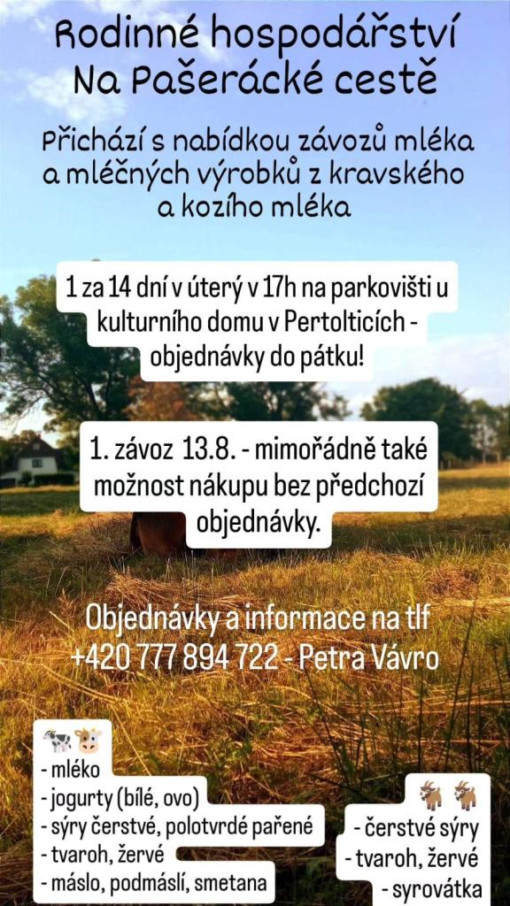 Prodej mléčných výrobků ekologické farmy v obci.